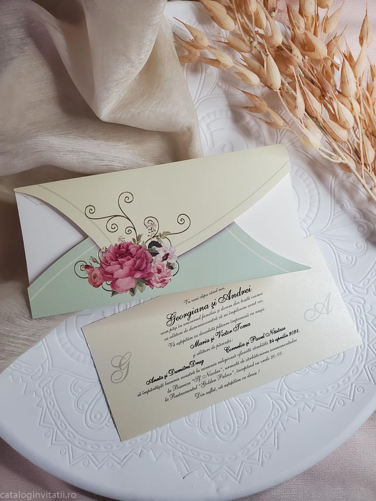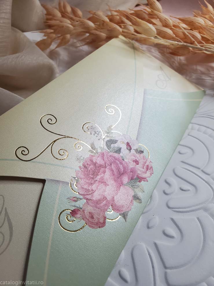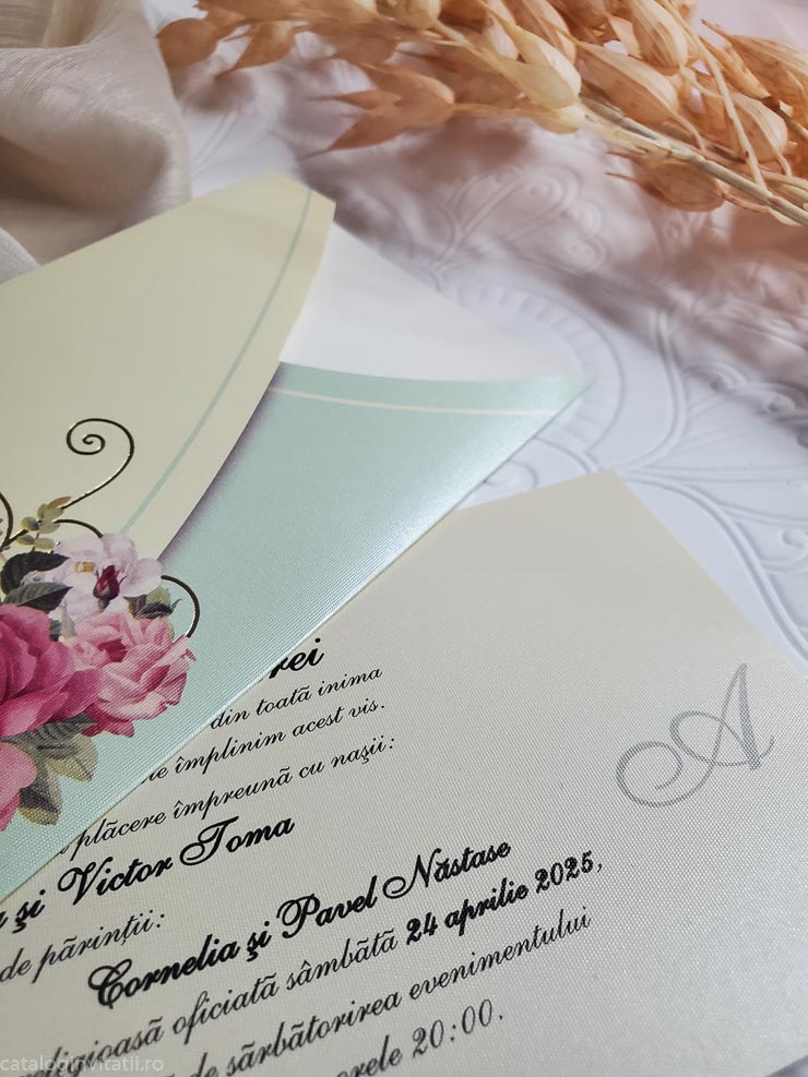 Această invitație se remarcă nu doar prin estetica sa irezistibilă, ci și prin calitatea materialelor folosite. Cartonul selectat pentru realizarea acestei invitații conferă un aspect premium și o textură fină, oferind o experiență tactilă plăcută.