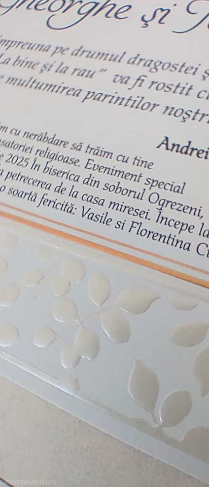 Fii primul care scrii o recenzie pentru „Invitatie chenar auriu ramuri embosate 989”