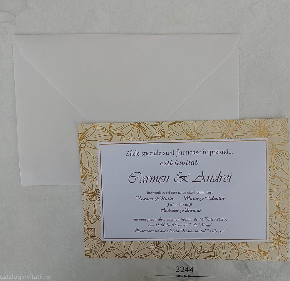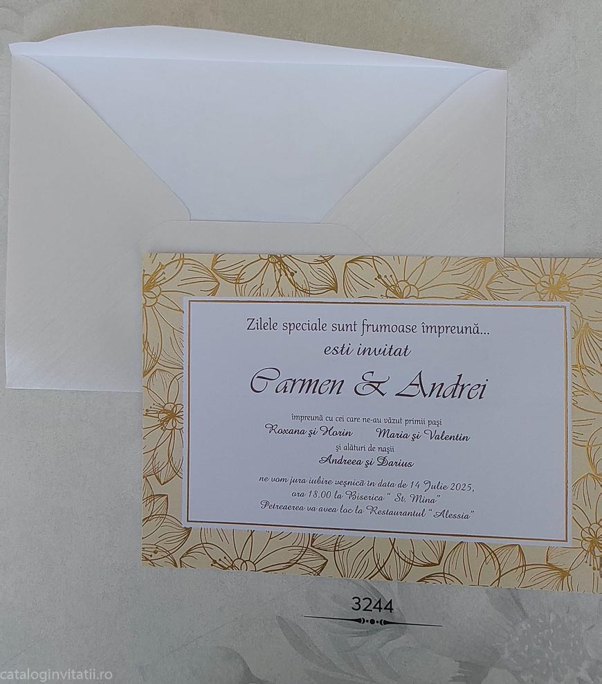 Invitatie clasica petale aurii plic ivory 3244 este un model realizat din două părți :
