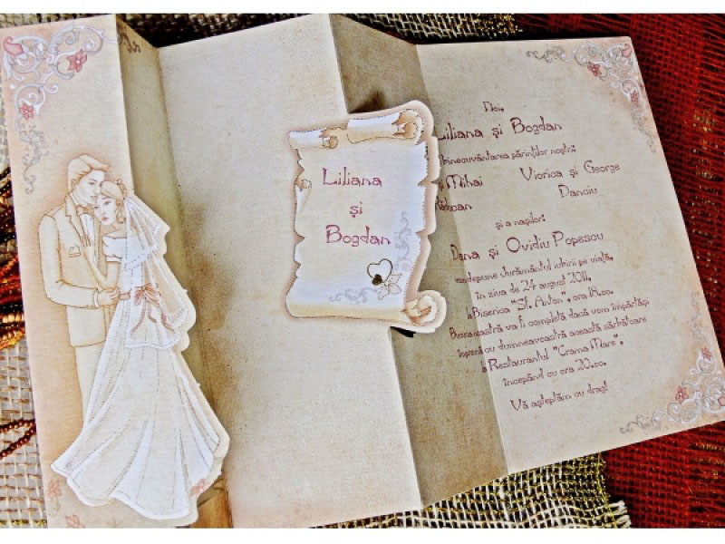 Această invitație de nuntă clasică în stil vintage 31314 este o alegere excelentă pentru cuplurile care doresc să aducă o notă nostalgică la nunta lor. Cu detalii de epocă și o estetică rafinată, această invitație reflectă cu precizie farmecul nuntii voastre și creează anticipare pentru momentul special. Lasă imaginile să vorbească de la sine și aducă o notă de eleganță retro la ziua voastră cea mare.