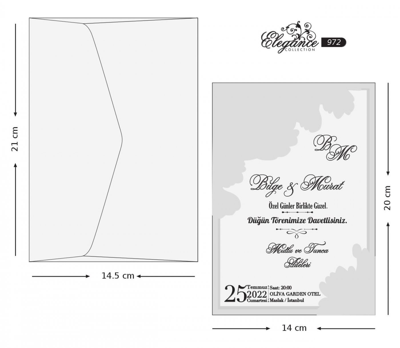 • Dimensiune invitație  –  20 cm /  14 cm