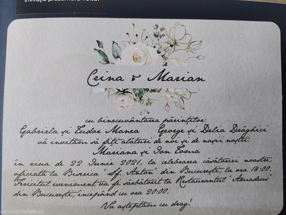 Cu tehnica sa de scriere deosebită, această invitație va captiva cu siguranță privirile destinatarilor. Fiecare detaliu este atent conturat, iar scrisul aduce o notă personalizată și plină de farmec.