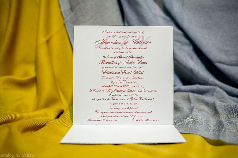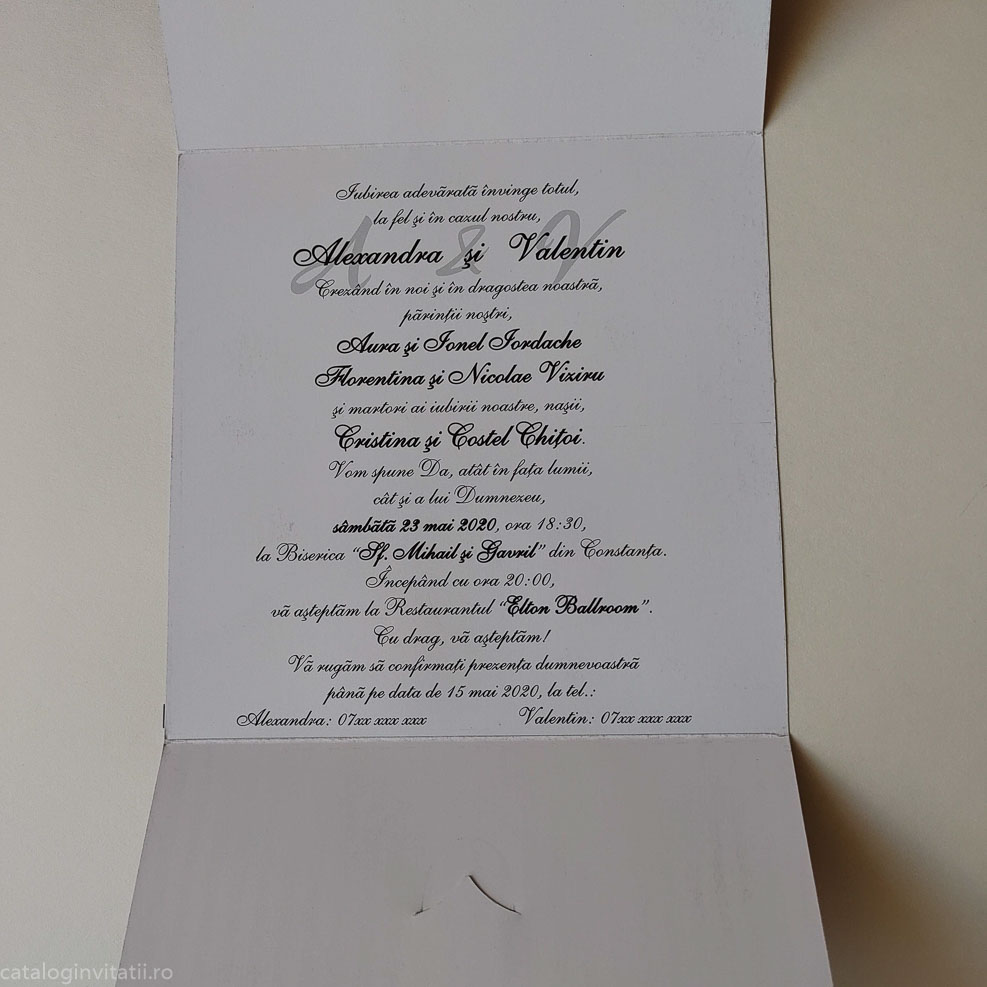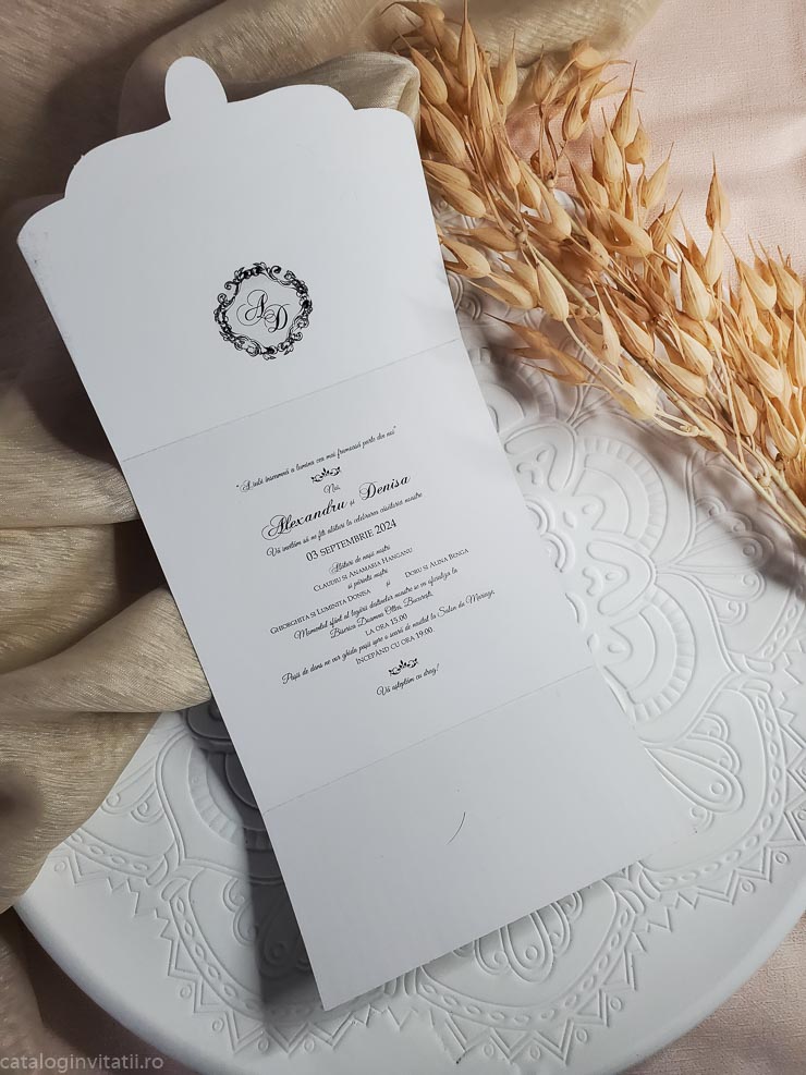 Această invitație este tipărită pe hârtie de înaltă calitate și este personalizată cu detaliile evenimentului tău. Fontul ales este elegant și ușor de citit, oferind un aspect clasic și rafinat.