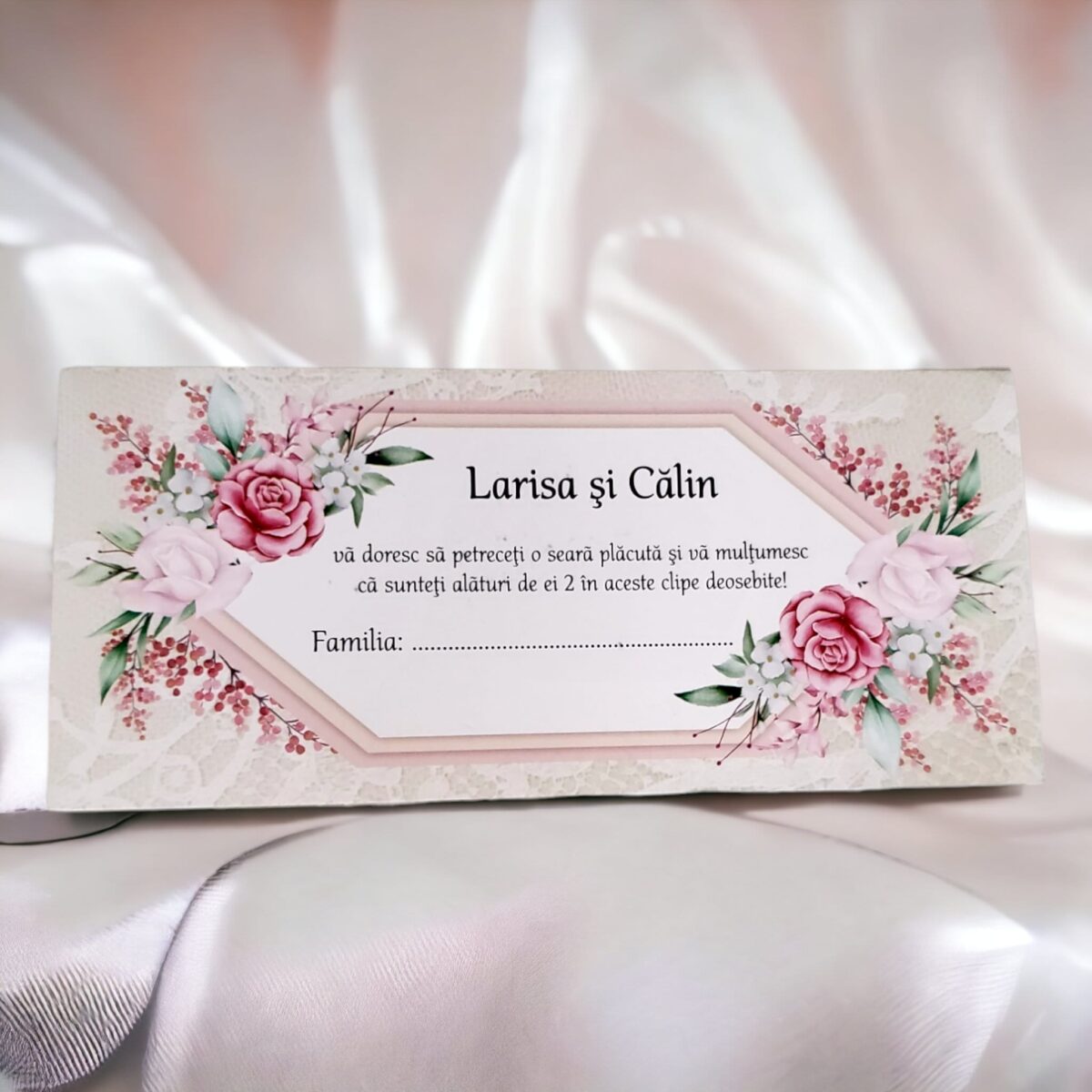 • Plicul are dublu rol plic bani si place card.