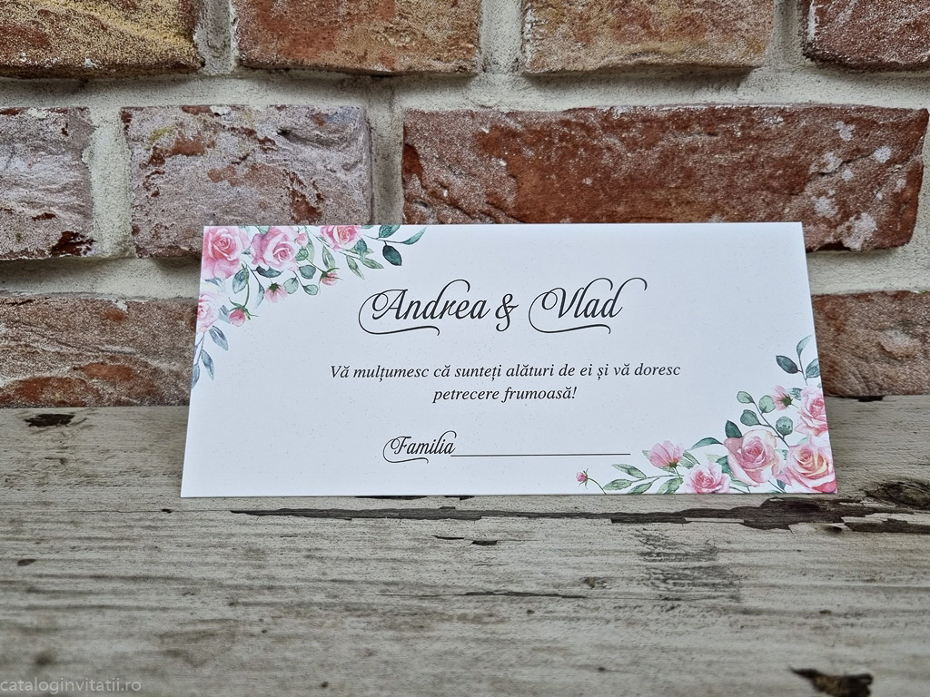 Acest produs este un plic de bani decorat cu model din trandafiri în lateralele stânga și dreapta, pe colțurile opuse. Trandafirii au flori roșii și frunze verzi, ceea ce oferă un aspect elegant și sofisticat. Acest plic de bani poate fi folosit pentru a ține banii în siguranță și pentru a oferi cadou, pentru a–i face pe cei dragi să se simtă speciali. Acest plic de bani poate fi folosit pentru a marca ocazii speciale precum nunți, zile de naștere sau chiar pentru a aduce noroc.