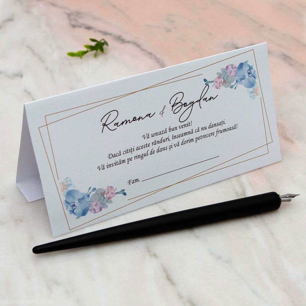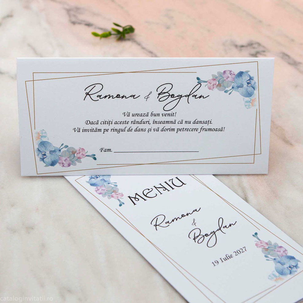 Decorat cu un rafinat model floral în nuanțe de albastru, acest plic este un veritabil deliciu vizual. Imaginile ilustrate evidențiază cu măiestrie detaliile delicate ale florilor și incadrarea aurie subliniază eleganța produsului. Această combinație de culori și design va captiva cu siguranță atenția tuturor invitaților.